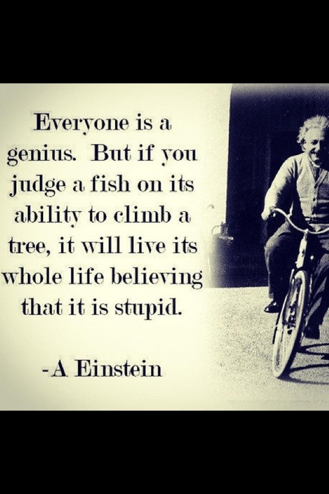 Hittade även detta citatet i mitt fotoarkiv. Säger mycket om att se våra egna styrkor, att vi är unika och att inte dömma efter en normalitet. Alla är genier!