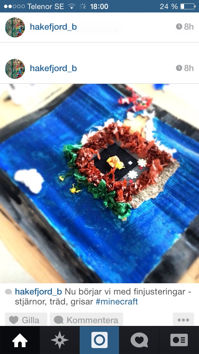 Det sker givetvis en massa sidoprocesser som vi inte hinner uppmärksamma lika mycket, de arbetar till exempel med pärlplattor, de gör Minecraftfigurer i lera, de ritar Minecraft och skriver om Minecraft – och det som vi tycker är roligt är att det finns en stark koppling till familjerna kring detta projekt, det blir till en familjesamverkan. Många syskon spelar Minecraft och föräldrarna vet mycket om barnens relation till Minecraft. Det glöder verkligen om projektet…
