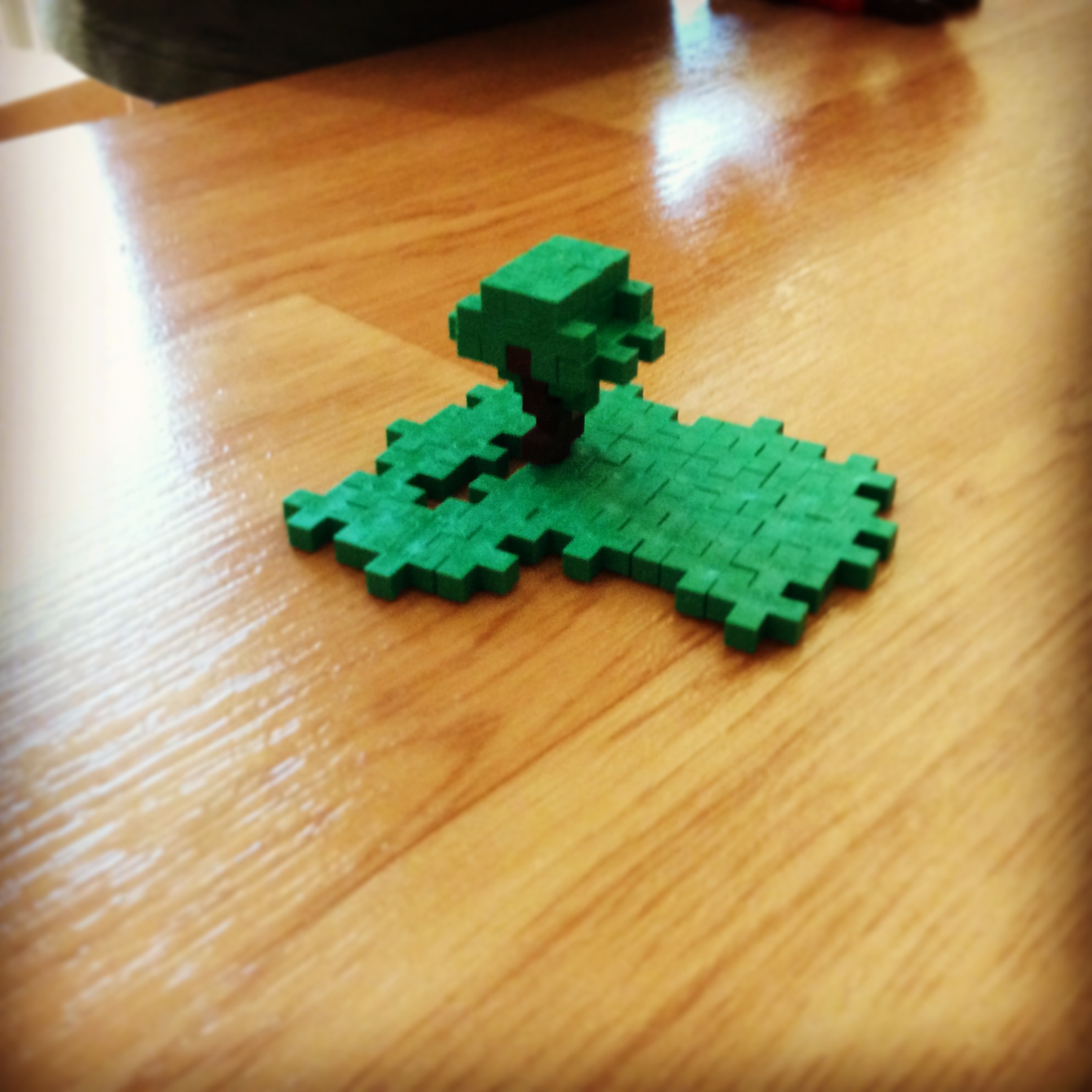 Vi väljer bygg och konstruktion och utmanar barnen att i olika material arbeta med fyrkanter och kuber (som Minecraft är uppbyggt av). Vi viker kuber av pappersfyrkanter, vi gör kuber i sand, vi utmanar barnen att rita med fyrkanter ”hur gör man en ring med fyrkanter??”, vi gör kuber i plus-plus.