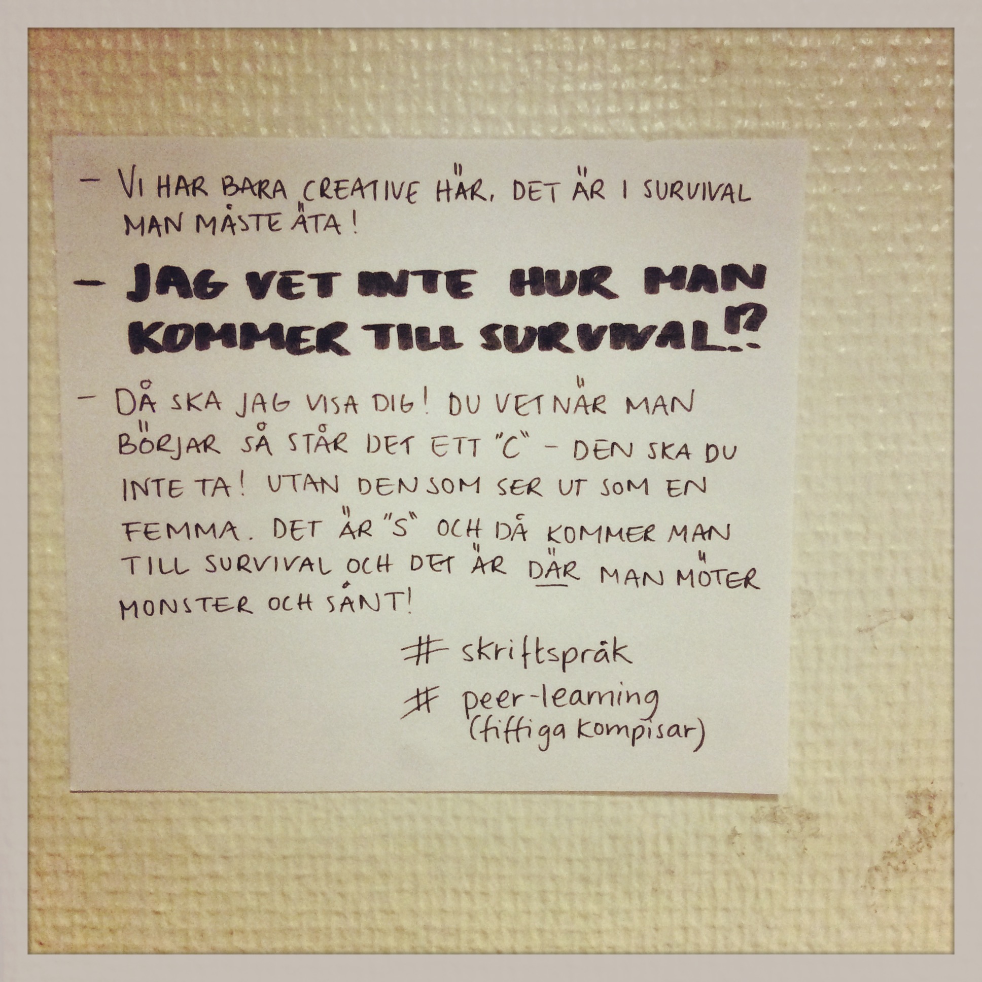 Det sker givetvis mycket mer lärande än vad vi kan se men när vi är flera som reflekterar ökar vi möjligheten för att se mera, att se saker ur olika perspektiv, utmana våra egna tankar och barnens, vilket gör att vi utvecklas! Då ser vi inte lärande längre som ett enkelt lärande utan som ett nätverk av komplext lärande och vi skapar ny kunskap kring lärande. En kunskap som blir meningsfull för oss och för de barn vi möter. Det som krävs är nyfikenhet – nyfikenhet på barnens processer, nyfikenhet på kollegans tankar och modet att våga ställa sina egna tankar i relation till sin tidigare erfarenhet och det jag möter i reflektion med andra – att våga ifrågasätta det jag tar för givet och tror mig veta. Vi behöver hjälp att synliggöra detta och för att kunna synliggöra behöver vi varandra!