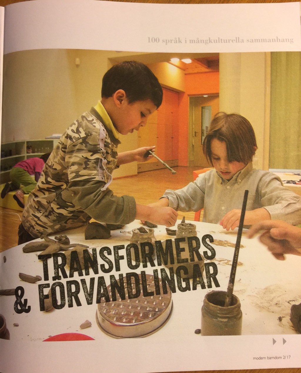 Läser senaste numret av Modern Barndom (nr 2/2017) om hur man inom ett interkulturalitetsprojekt mellan Sverige och Italien närmat sig Transformers som utgångspunkt för uttryck och utforskande av förvandlingar. Artikeln heter ”Transformers och förvandlingar” och jag blir påmind om vårt Minecraft-projekt som vi arbetade med på förskolan. Här finner du länken till det blogginlägget. Det som framkommer i artikeln är igenkännande, barnens populärkultur blir en gemensam referensram som vi kan ta vidare, djupare.