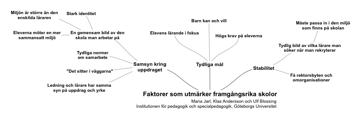 Läste en kort notis om ny forskning från Göteborgs Universitet. Samsyn, tydliga mål och stabilitet är det som Jarl, Andersson & Blossing (2017) har kommit fram till utmärker de mest framgångsrika skolorna. Se bild nedan: