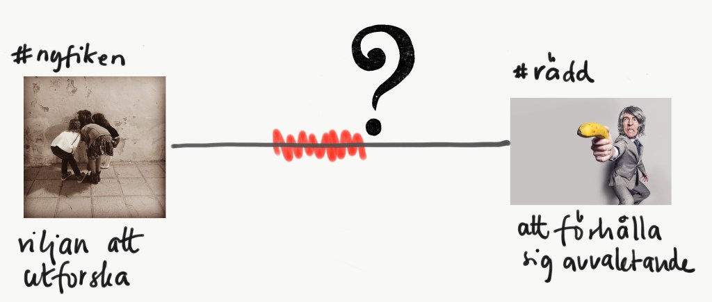 Bara det att barn direkt skapar frågor och hypoteser medan vi skapar bilder av harmagedon…om man nu vill överdriva det hela. Jag undrar när brytpunkten inträffar…när sker den? Eller i alla fall när avvaktandet väger tyngre än utforskandet.