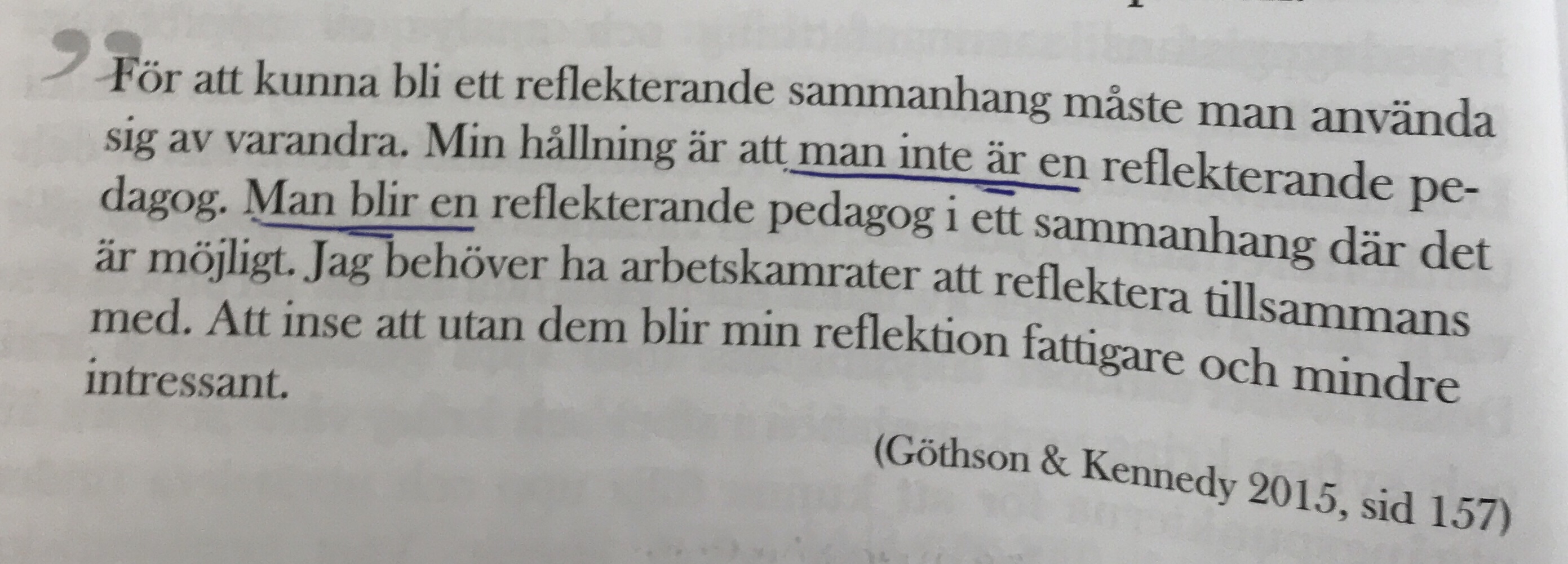 Till ett dilemma om reflektion kopplat till ovanstående – Hur får vi alla att VILJA reflektera? Och KAN man egentligen få välja??? Hur får vi med dem som tappat glöden eller som inte vill? Att vi organiserar för många olika slags reflektioner och, inte bara organiserar utan också att varje individ tar ansvar för att ha börjat vrida på sina tankar när man möts vid reflektion. Annars blir det som att lämna över tanken till någon annan och det gör att vi missar möjligheten att hitta ett djup tillsammans. För klok blir man inte själv. Och nyfikenheten…vad vore livet utan den? Hur hjälper vi varandra att hitta nyfikenheten på barnen? Med barnen? Så barnen möter vuxna med ett genuint intresse av att låta barnens röster höras!