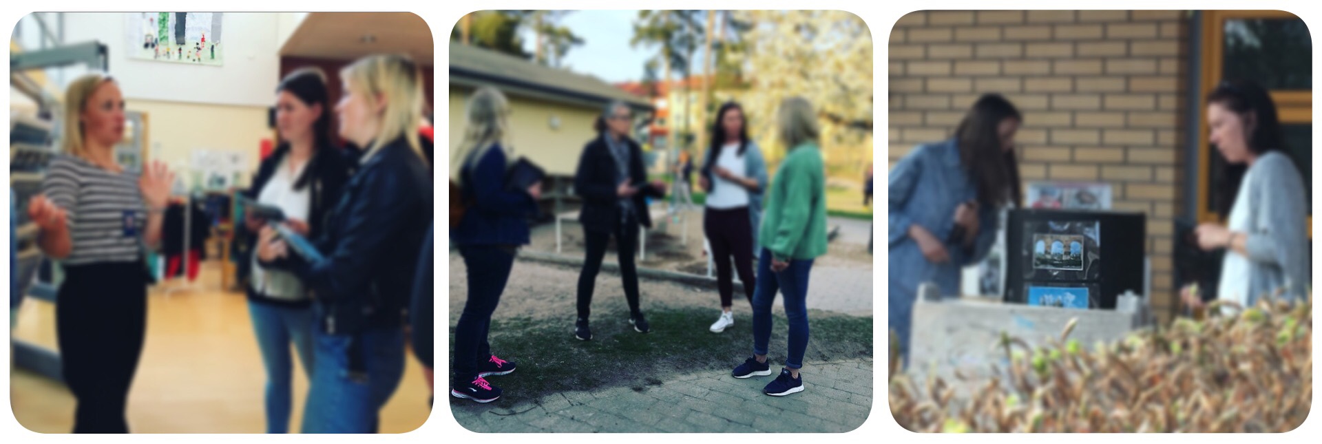 Jag valde också ett eget fokus under studiebesöken och det var himlans intressant! Ofta försöker jag att ta samma fokus som pedagogerna men denna gången ville jag följa upp två saker i lärmiljöerna; bygg och konstruktionsmiljöernas progression och dokumentation/reflektionsväggarna. Jag försökte att hålla mig borta helt från den andra miljön och följde istället byggzonerna som en röd tråd mellan avdelningar och det var intressanta saker som synliggjordes. Tittade också en del på deras inspirationshäften kring olika basmiljöer. Dock behöver jag titta på bilderna i lugn och ro för att kunna göra en mer djupande analys. Men jag tror vi är något på spåren! Gick också igång på begreppet ”reflektionsvägg” kontra ”dokumentationsvägg”. Dokumentationsväggen kan bli statisk om vi bara sätter upp bilder medan reflektionsväggen, som begrepp, är aktivt. Så det tror jag vi behöver köra ett varv i Gråbo. Vad ska vi kalla det?