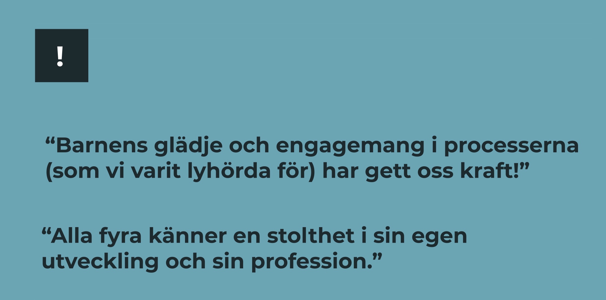 Jag har drivit samma fokusfråga under våren och håller med om att se pedagogers utveckling gör att något händer i kroppen och i medvetandet. Att det vi gör tillsammans skapar en bättre förskola för barnen i framtiden, att det vi gör tillsammans faktiskt gör skillnad.
