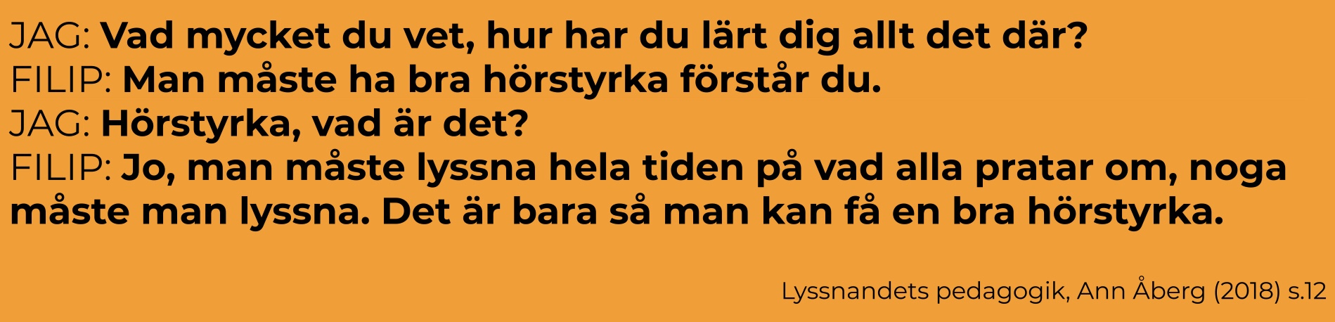 Kan också konstatera att jag behöver låna ”Lyssnandets pedagogik” eftersom det låter som detta är en bok väl värd att läsa!