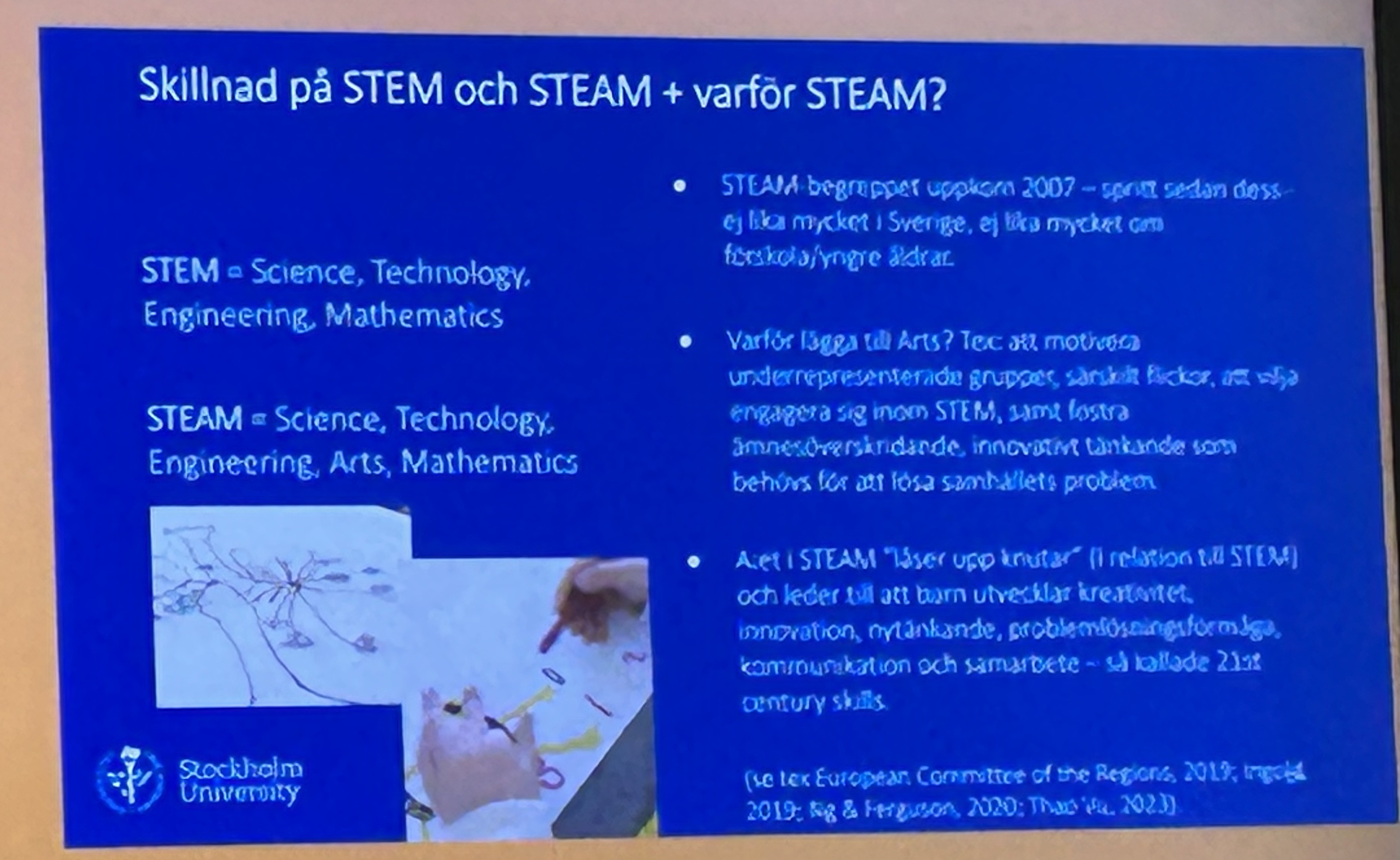 Under fredagen hade jag möjlighet att vara med på Gothia Kompetens förskolekonferens kring begreppet STEM – eller STEAM, som jag föredrar. Det var en givande dag med många kloka inspel som väckte tankar om såväl dagens förskola som min egen tid som förskollärare och den medvetenhet kring STEAM som fanns då.